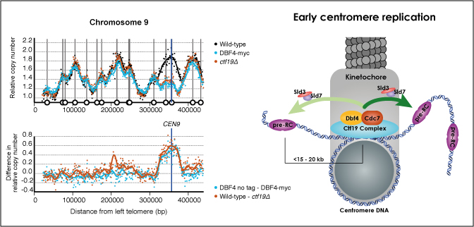Kinetochores coordinate pericentromeric cohesion and early DNA replication by cdc7-dbf4 kinase recruitment.